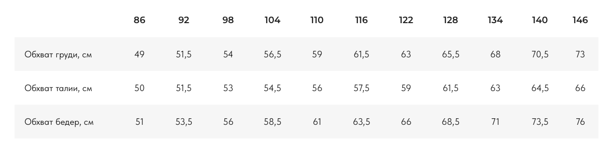Прибавки по груди, см: 34 - 44 Прибавка потаили, см: 15,5 - 28 Прибавка по бедрам, см: 11,5 - 14