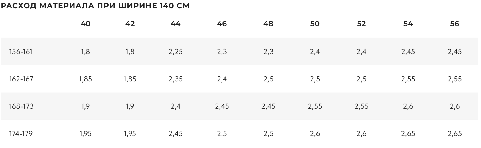 Важно! Расход основного материала дан без учета усадки и совмещения рисунка. Если вы предпочитаете кроить с минимальными выпадами или ширина вашего материала отличается, рекомендую распечатать и разложить выкройку перед покупкой материала.
