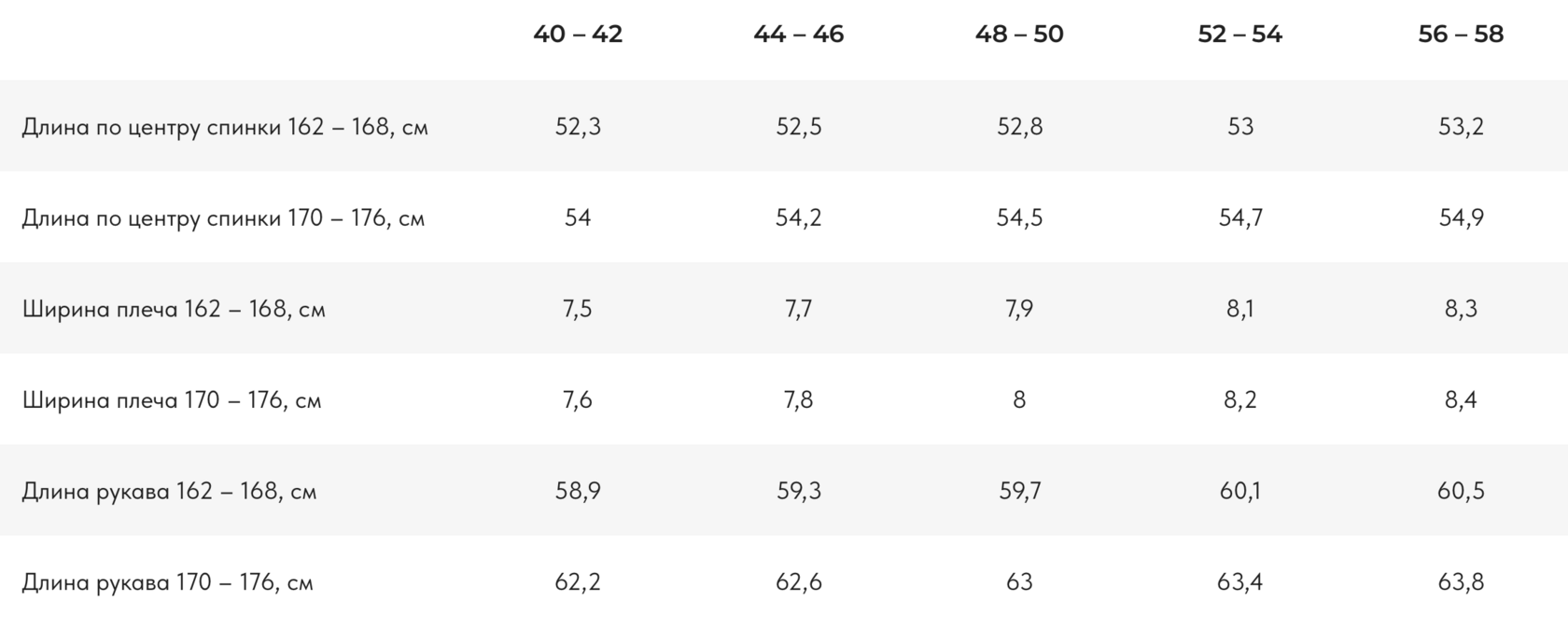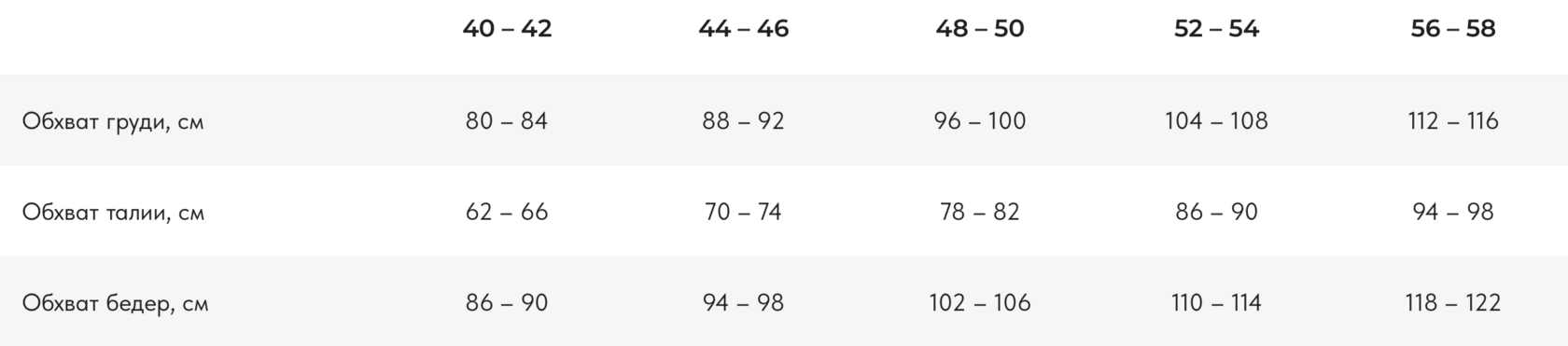 Перед покупкой обязательно сверьтесь с таблицей размеров!