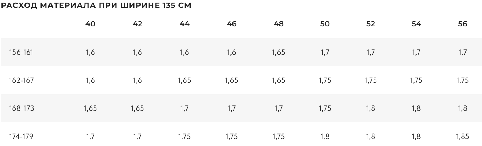 Важно! Расход основного материала дан без учета усадки и совмещения рисунка. Если вы предпочитаете кроить с минимальными выпадами или ширина вашего материала отличается, рекомендую распечатать и разложить выкройку перед покупкой материала.