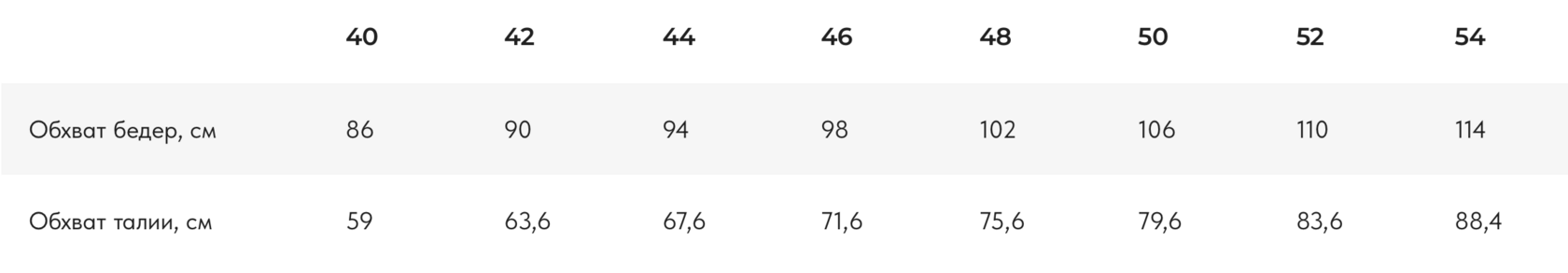 Прибавка по талии: 3,1 — 3,6 см Прибавка по бедрам: 9,8 — 10,7 см